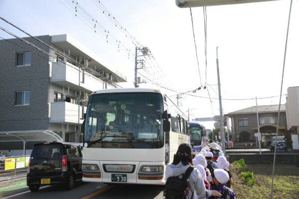 楽しみなことがいっぱいあるのでしょう。みんな笑顔でバスに乗り込んでいきます。