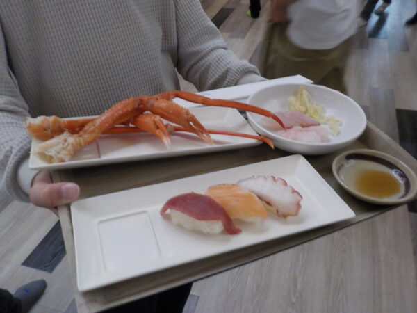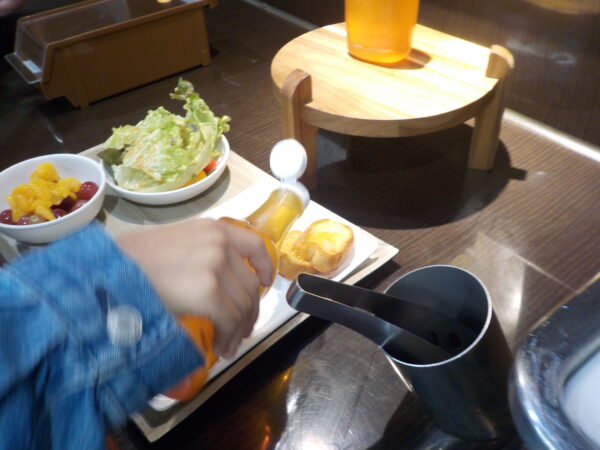 夕食はバイキング。ものすごい種類の食べ物から、バランスを考えながら選びます。