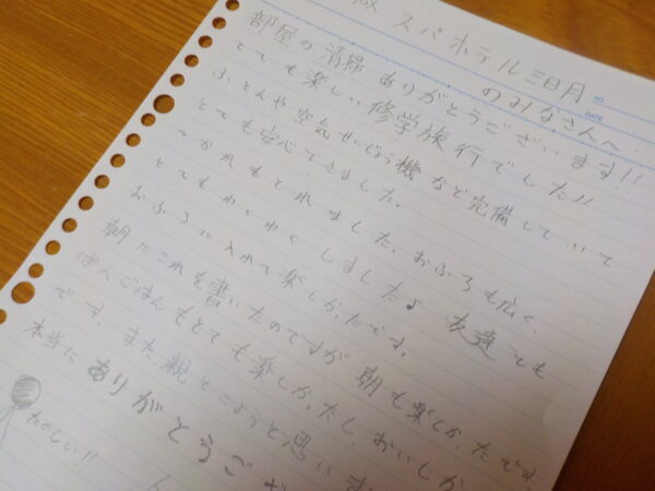 ホテルの方への手紙を残す子供も。思わず撮影してしまう、嬉しい姿です。