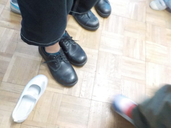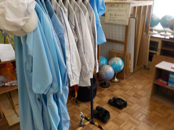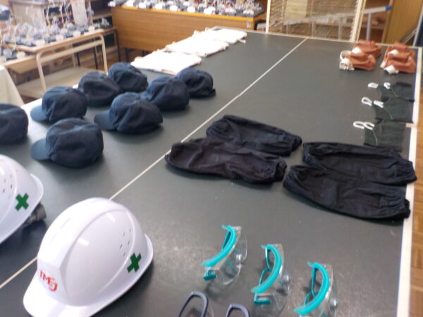 作業着を着たり、安全靴を履いてその硬さを体験したり。