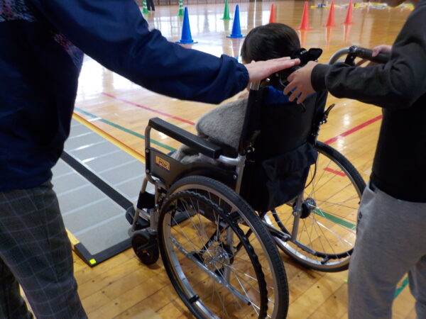 車いすで坂を上る時、乗っている人はどんな気持ちなのかな。押すときはどんなことに気を付けなければいけないのかな。